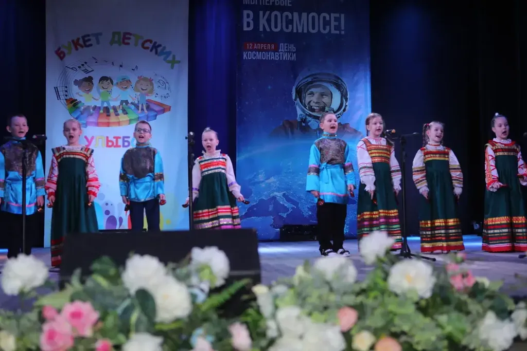 10 апреля 2026 года в Доме культуры «Юбилейный» состоялся фестиваль детского творчества «Букет детских улыбок», посвященный Году единства народов России, в рамках Дня космонавтики и 65 - летия со дня первого полета в космос Юрия Гагарина. ДШИ № 31 представили учащиеся отделения народного пения, детский фольклорный ансамбль «Потешки» и Ульяна Роговцова (руководитель Чухрова Н.А., концертмейстер Симахин С.А.). В исполнении ребят прозвучали русские народные песни, зрители встретили их теплыми аплодисментами. В завершении фестиваля участники были награждены Благодарственными письмами и.о. главы Тяжинского муниципального округа и сладкими призами.